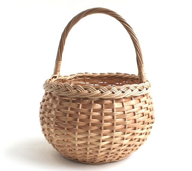 リトアニア製 柳のかご 三つ編み縁飾りツイストハンドル Mサイズ